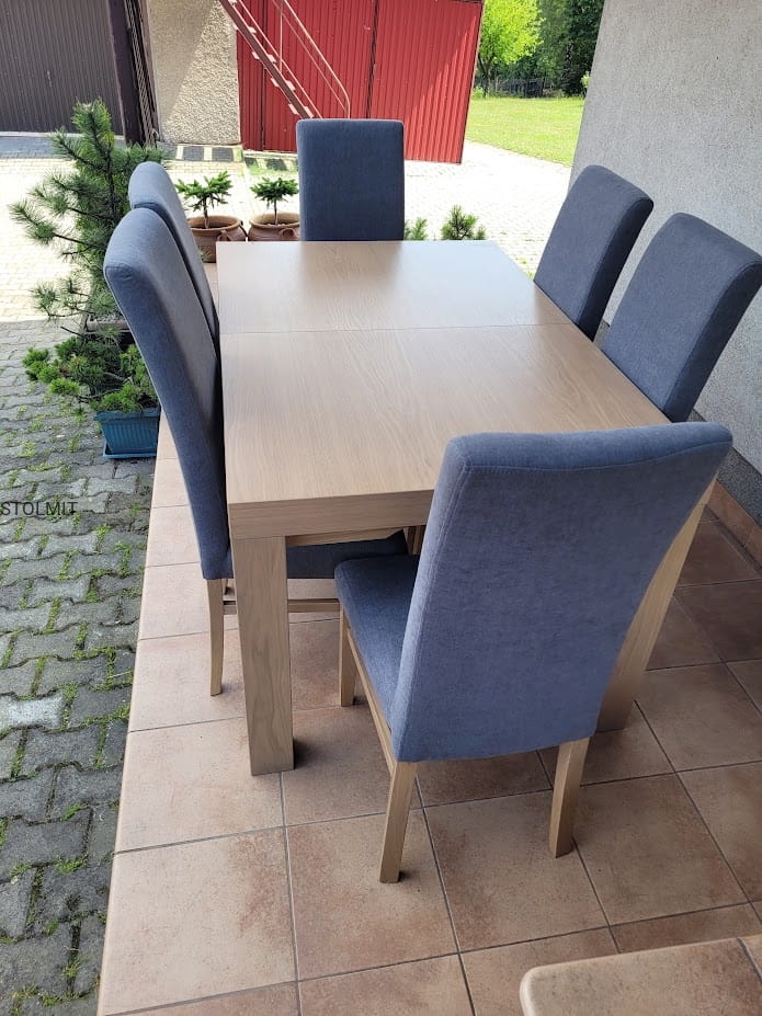Dębowy stół 8 nóg + 6 wygodnych krzeseł komin - duże wymiary