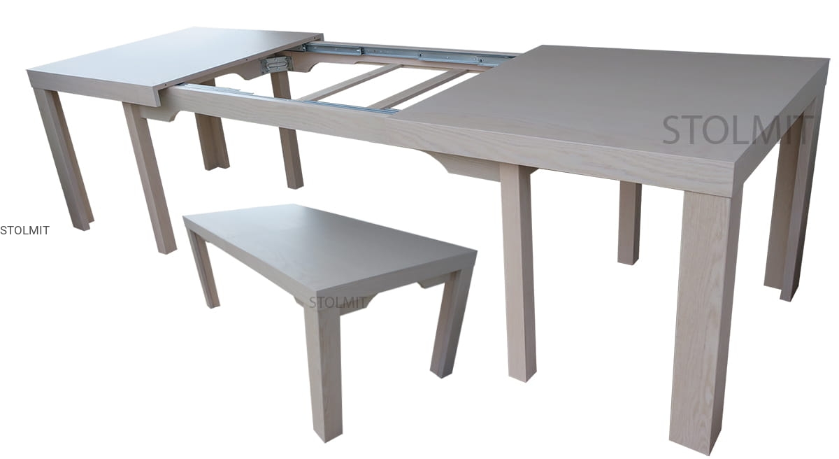 Stół w tej ofercie jest typu 8 nóg dzięki czemu po rozsunięciu jest stabilny i może mieć 4, 5 lub 6 wkładów powiększających i może się rozsuwać do dużych wymiarów w zależności od tego jaki jest duży stół przed rozłożeniem. Stół może rozkładać się do 3, 4 a nawet 5 metrów. Wkłady mogą mieć wielkość 4x40, 4x45, 4x50, 4x60, 5x40, 5x50, 5x60, 6x50 cm i inne na zamówienie. Dostępna szerokość stołu to np. 70, 80, 90, 100 i 110 lub inne na zamówienie.