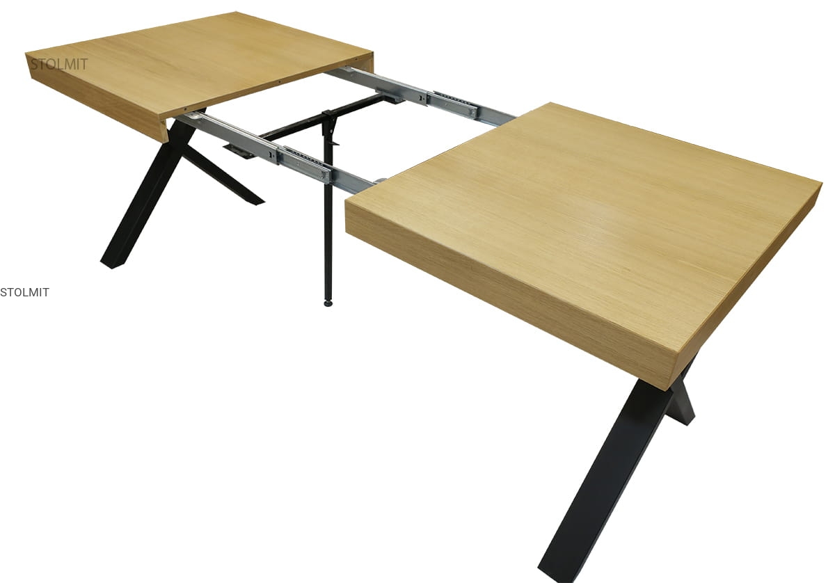 Stół może być w dowolnym wymiarze z listy po prawej stronie w całości lub rozsuwany wraz z nogami a w środek umieszczony jest wkład / wkłady. Stół może rozsuwać się z jednym wkładem lub dwoma wtedy to większych wymiarów stołów montujemy podpórkę stalową przy prowadnicy jak na zdjęciu w galerii. Stół po rozłożeniu jest stabilny. Wkłady przechowujemy poza stołem. Na blacie nie powstają odbarwienia po wylanych płynach (sok, alkohol) czy ciepłych przedmiotach postawionych na nim (kubek, talerz itp).