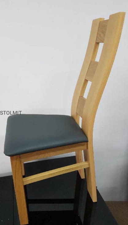 KRZESŁO wykonane jest z drewna dębowego, profilowane pod plecami. Krzesło barwione jest wysokogatunkową bejcą i lakierem na dowolny kolor z listy po prawej stronie. Istnieje możliwość wyboru koloru wybarwienia drewna oraz tkanin tapicerskich. Krzesła są eleganckie i odpowiednio profilowane przez co są bardzo wygodne w użytkowaniu i łatwe w przesuwaniu.