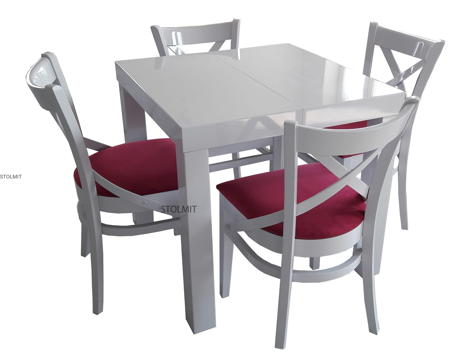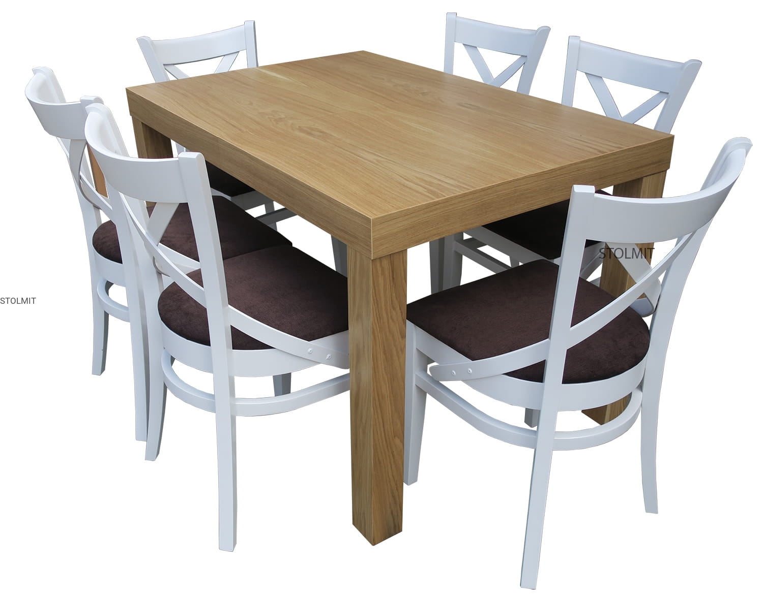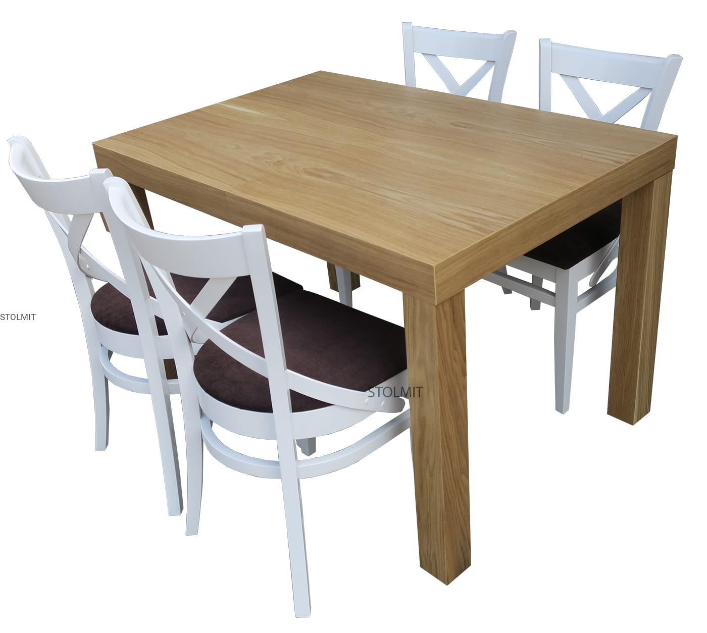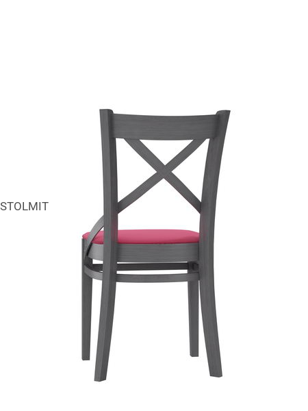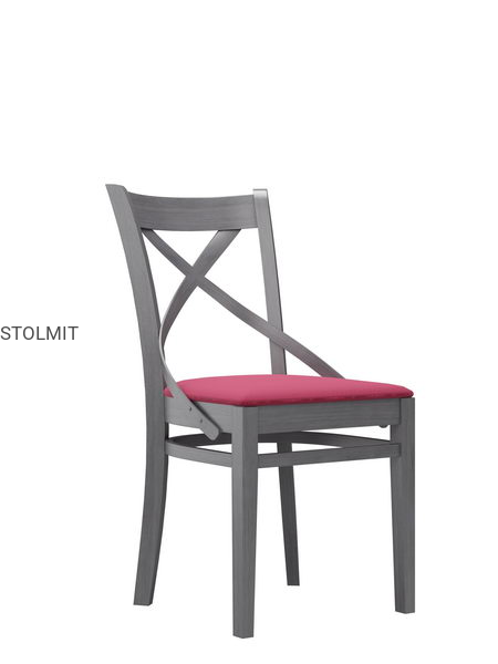 KRZESŁO wykonane są w całości z drewna bukowego, profilowane pod plecami w kształcie litery X. Krzesło pomalowane jest wysokogatunkową bejcą i lakierem na dowolny kolor z listy po prawej stronie lub lakierem kryjącym białym matowym lub połyskowym. Istnieje możliwość wyboru koloru wybarwienia drewna oraz tkanin tapicerskich.
