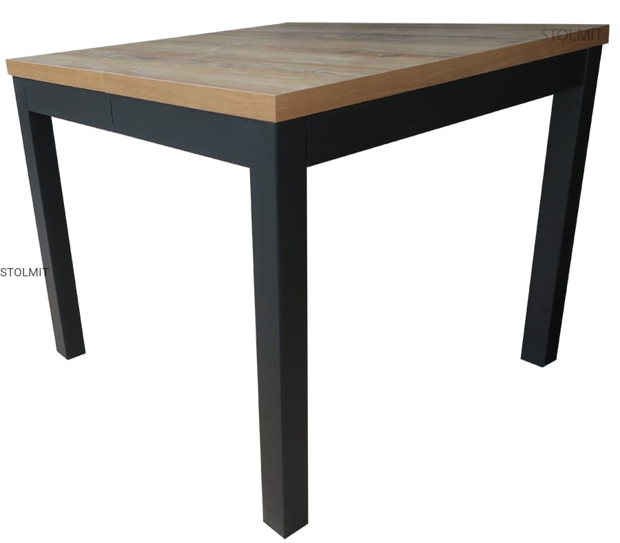 Stół w tej ofercie ma blat wykonany z okleiny fornirowanej dębem dąb naturalny bez bejcy lub bejcowanej w dowolnym odcieniu z bejcy klasycznej lub bejc pastelowych za dopłatą. Blat również może być dopasowany do przesłanej próbki kolorystycznej od Państwa np. odpad z paneli podłogowych, półka z mebli itp.