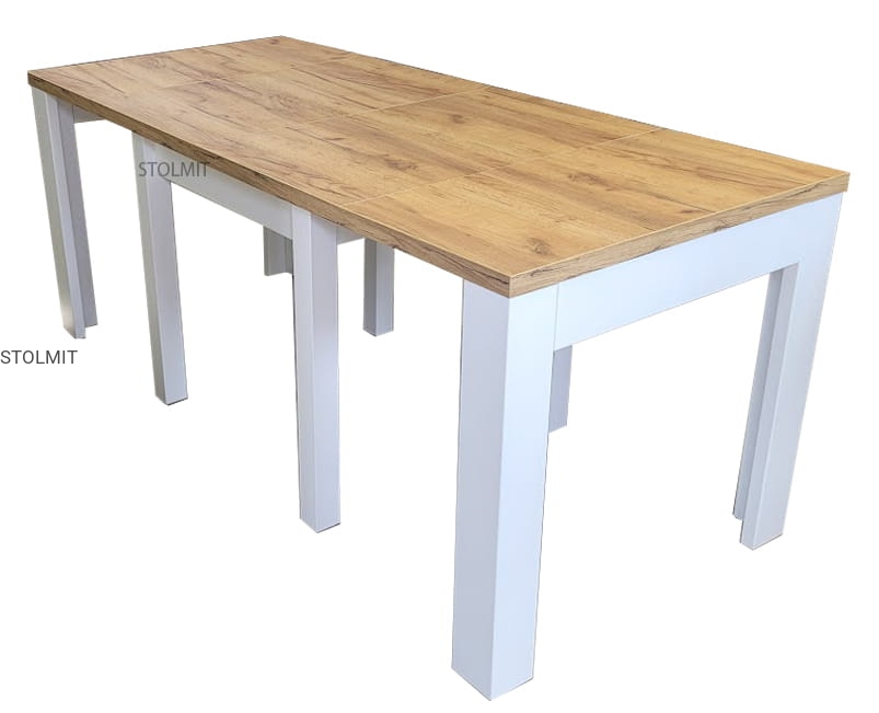 Stół na zdjęciu jest wykonany z płyty meblowej dąb craft z kraft złoty - na zamówienie lub z każdej innej płyty.