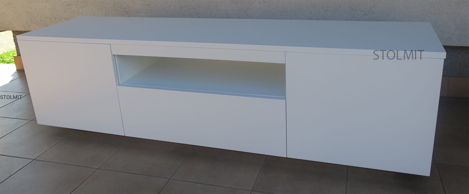 Komoda telewizyjna wykonana jest z płyty meblowej białej, wykonujemy inne kolory m.in.: