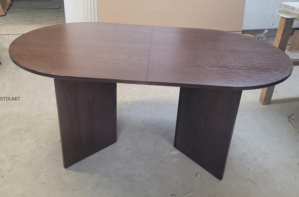 - z jednym wkładem rozsuwa się tylko blat, nogi zostają w miejscu. Na zamówienie można dokupić prowadnice synchroniczną linkową lub stół może rozsuwać się z nogami. Wkład jest poza blatem