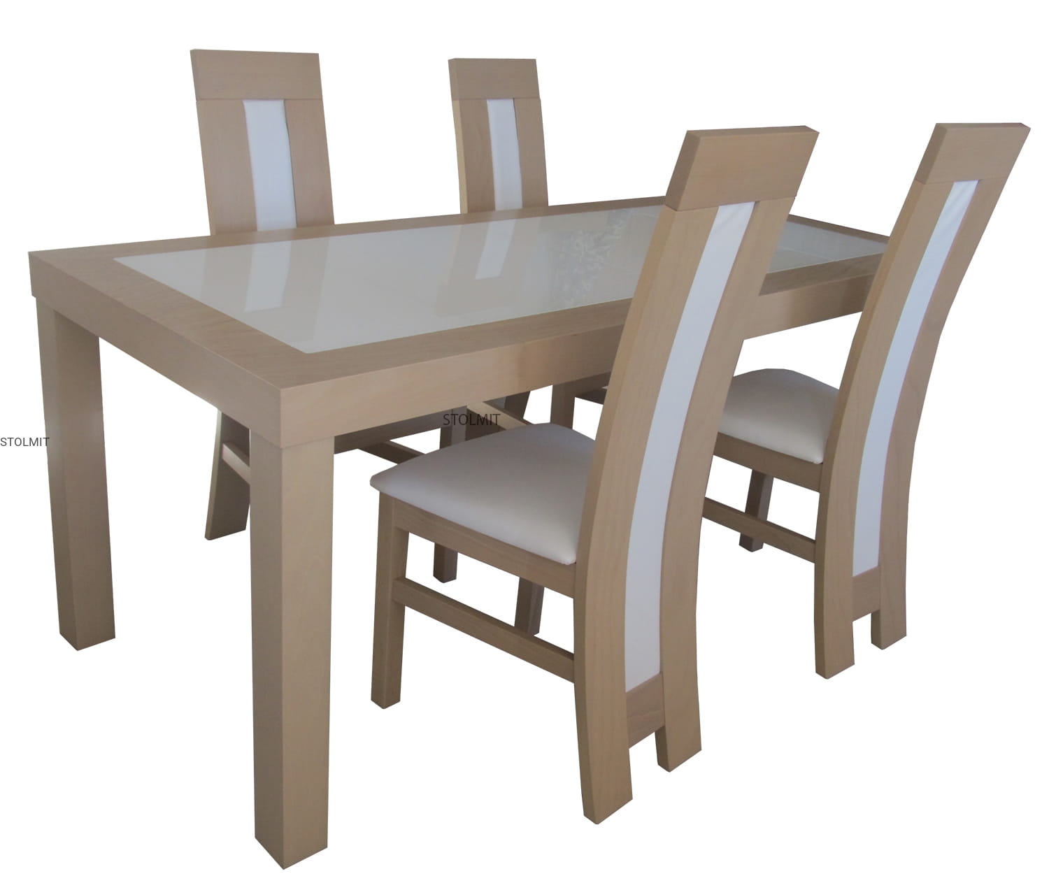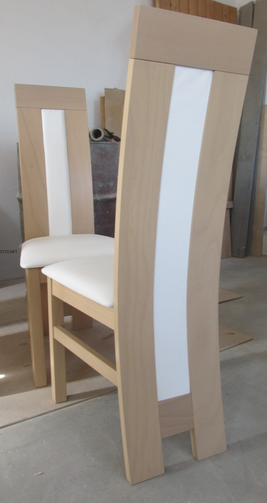 Krzesło długi pasek wykonane jest z drewna bukowego i tapicerowane wysokiej jakości pinkami i tkaninami tapicerskimi. Krzesło pomalowane jest wysokogatunkową bejcą i lakierem w tym samym odcieniu co stół. Istnieje możliwość wykonania krzeseł obitych skórą naturalną oraz z materiałem odpornym na plamy - łatwo czyszczącym np. top textil, magic home, clenaboo itp. Krzesła w tej ofercie są w tym samym odcieniu co stół.