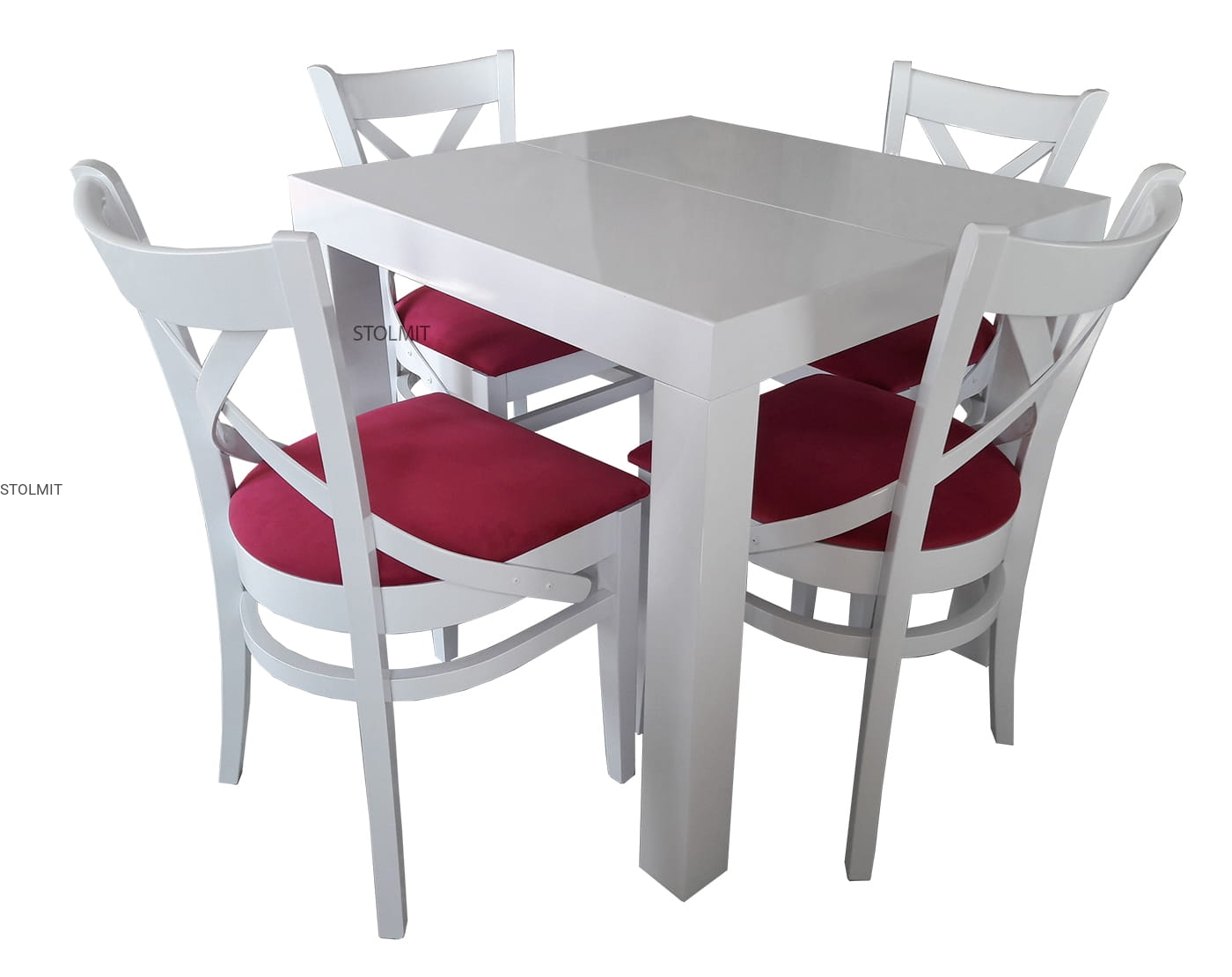 Rozkładany kwadratowy stół matowy biały + 4 wygodne krzesła