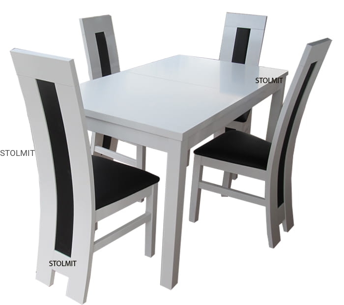 Stół wykonany z drewna i gładkiej płyty meblowej lakierowanej i polerowanej w wysokim połysku. Na blacie nie powstają odbarwienia po wylanych płynach (sok, alkohol) czy ciepłych przedmiotach postawionych na nim (kubek, talerz itp). Lakier jest z filtrem UV.