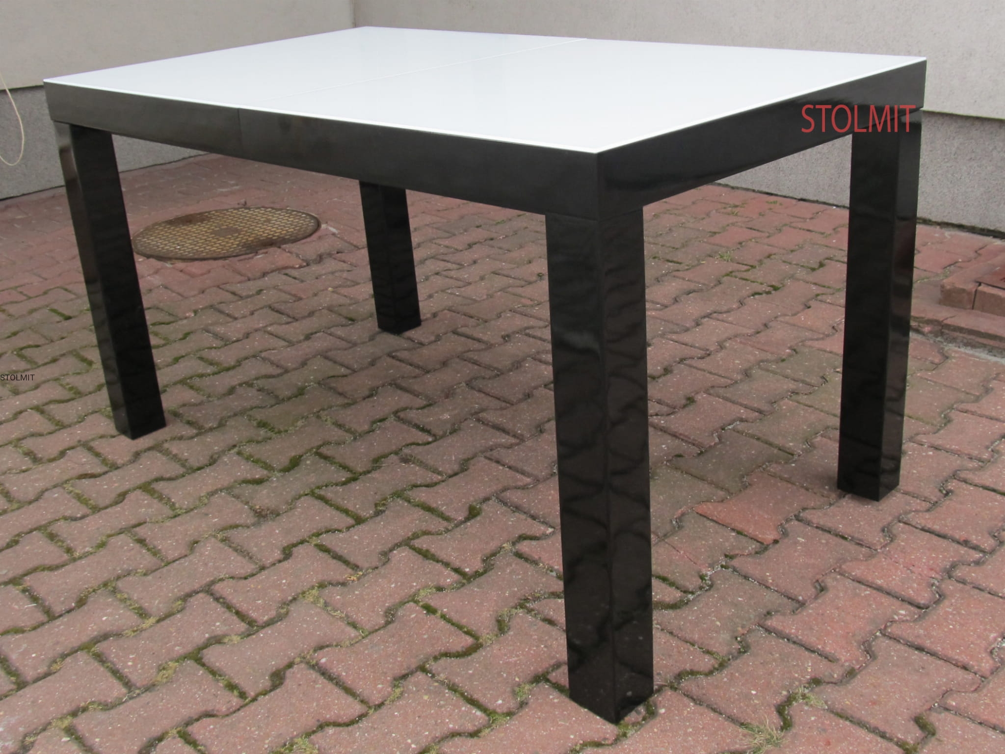 - kanty i nogi oraz rama stołu wykonane z drewna lakierowanego lakierem kryjącym w czarnym połysku