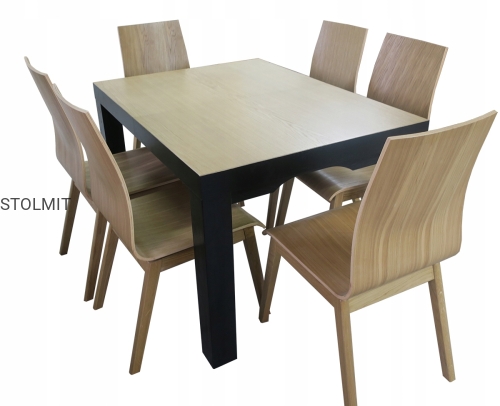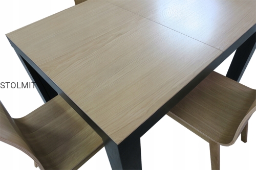 Blat jest wykonany z okleiny dąb, bejcowanej kolorystyką jak z załącznika bejc poniżej i lakierowany. Stół może być w odcieniu dąb naturalny jak na zdjęciu głównym. W naszych innych ofertach są inne stoły.