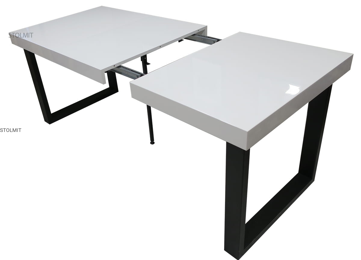 Stół może być w dowolnym wymiarze z listy po prawej stronie w całości lub rozsuwany wraz z nogami a w środek umieszczony jest wkład / wkłady. Stół może rozsuwać się z jednym, dwoma lub trzema wkładami wtedy to większych wymiarów stołów montujemy podpórkę stalową przy prowadnicy jak na zdjęciu w galerii. Stół po rozłożeniu jest stabilny. Wkłady przechowujemy poza stołem. Na blacie nie powstają odbarwienia po wylanych płynach (sok, alkohol) czy ciepłych przedmiotach postawionych na nim (kubek, talerz itp).