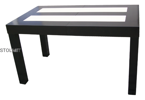 Nogi, rama stołu i kanty wykonane są z drewna i lakierowane są w ty samym odcieniu co blat stołu. Na blacie nie powstają odbarwienia po wylanych płynach (sok, alkohol) czy ciepłych przedmiotach postawionych na nim (kubek, talerz itp). Stół jest dzięki swojej prostocie, idealnie będzie pasował do jadalni, kuchni oraz eleganckich salonów. Wkłady powiększające nie mają szkła, oczywiście za dopłata mogę być ze szkłem jak na blacie głównym.