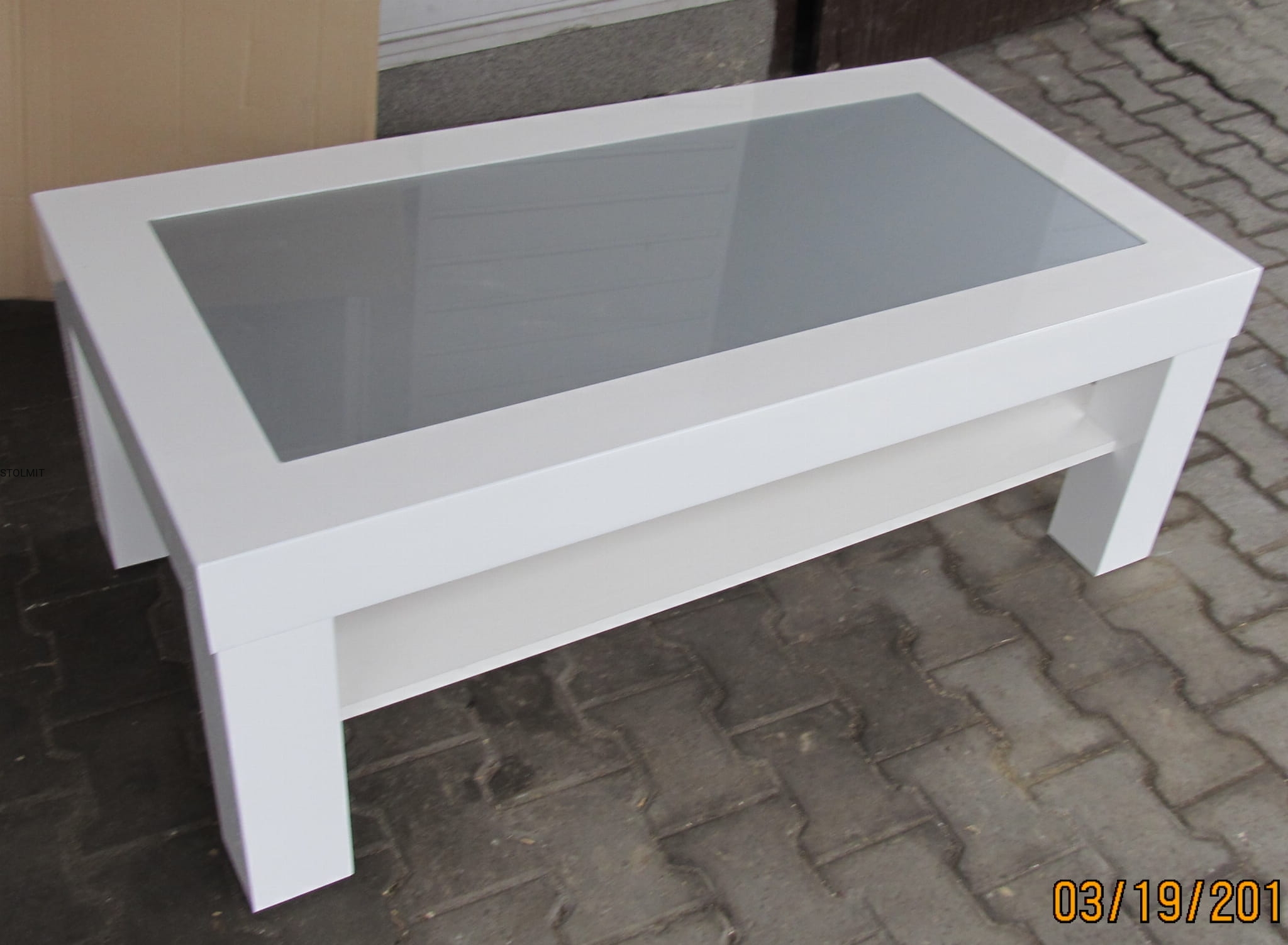 Stolik biały połysk ze szkłem - na wymiar